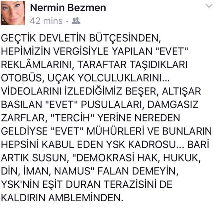 Sosyal medya hesapları özellikle referandum sırasında ve sonrasında son derece farklı paylaşımlara sahne oldu. Kimileri seçimlerde yaşandığı öne sürülen sahtekarlıkları gündemlerine taşırken kimileri de referandumla ilgili fikirlerini paylaştı. İşte sosyal medyadan paylaşılanlar: