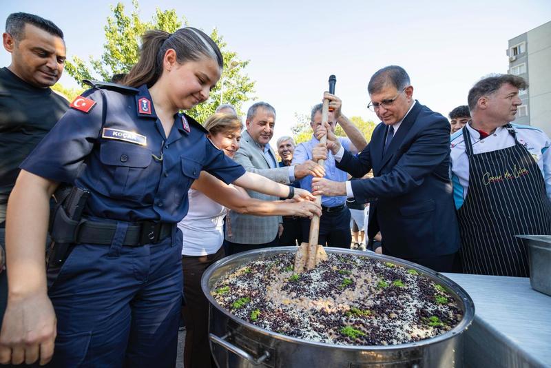 Karşıyaka Kaymakamı Özkan Demir, “Çok zor bir coğrafyada yaşıyoruz. Zor zamanlardan hep birlikte geçiyoruz. Bizi biz yapan değerlere her zamankinden daha fazla sarılmamız gerektiğine inanıyorum” dedi. Mustafa Kemal Mahalle Muhtarı Hanımşah Han, “Burada birliğin, bereketin sembolü olan aşure günü vesilesiyle bir araya geldik. Her yıl olduğu gibi bu yıl da farklılıklarımızı aynı kazanda kaynaştıran bu güzel gelenek sayesinde gönüllerimizi birleştiriyoruz” ifadelerini kullandı.