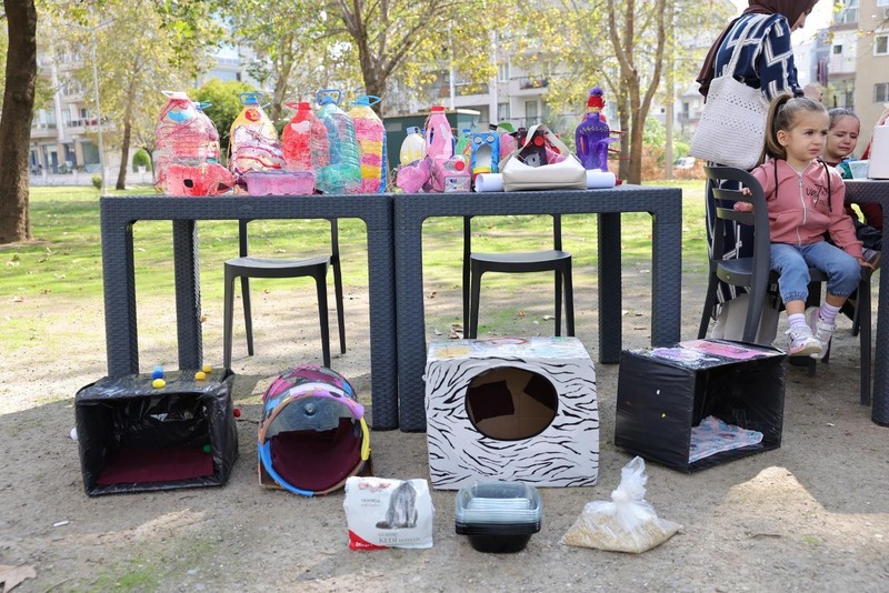 Bayraklı Belediyesi Kültür ve Sosyal İşler Müdürlüğü tarafından yürütülen geri dönüşüm temalı etkinlik, Soğukkuyu Mahallesi Şehit Kara Pilot Yüzbaşı Ümit Özerli Parkı’nda gerçekleştirildi. Renkli görüntülere sahne olan etkinlik, çocukların el becerilerini ve yaratıcılıklarını geliştirirken; doğa bilinci, sorumluluk duygusu ve hayvan sevgisi kazandırmayı da hedefledi. Anne ve çocuklar, atık malzemeleri değerlendirerek sokak hayvanları için barınaklar tasarladı. Başkan Önal da çocuklarla birlikte kuş yuvalarını ağaçlara, kedi evlerini ise uygun noktalara yerleştirdi. Etkinlik sonunda katılımcılar yaptıkları kuş yuvalarını ağaçlara astı, kedi evlerini ise sokak hayvanlarının barınabileceği alanlara bıraktı.