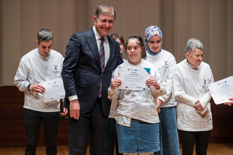 Ege Üniversitesi Hemşirelik Fakültesi Dekan Vekili Prof. Dr. Fatma Orgun da proje kapsamında yapılan çalışmaları aktararak projeyi bir son olarak değil, daha kapsayıcı uygulamaların başlangıcı olarak görmek gerektiğini sözlerine ekledi. Konuşmaların ardından Başkan Tugay tarafından projeye katılan zihinsel engelli bireylere sertifikaları takdim edilirken, projeye destek sunanlara da plaket takdim edildi. Tören, sunum ve oturumlarla devam etti.