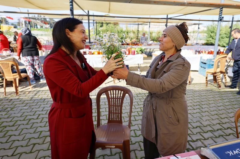 Programın ardından Başkan Sengel, Kadın Emeği Pazarı’nı ve Efes Tarlası Yaşam Köyü’nde kurulan Üretici Pazarı’nı ziyaret ederek kadın üreticilerle bir araya geldi