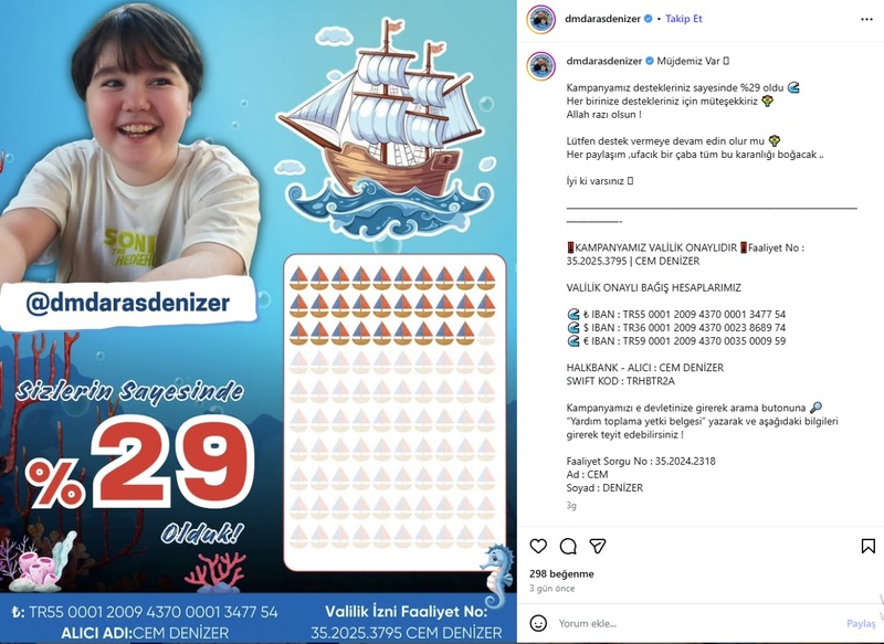 Aras Denizer'in babası Cem Denizer, valilik onaylı kampanyalarıyla ilgili olarak yaptığı açıklamada: "Umudumuz var. Çevremizdeki insanlar, dostlarımız destek veriyorlar. Destek veren herkese teşekkür ediyoruz. 1 lira bile yatırsalar bizim için umuttur. Valilik izniyle hesaplarımız var. Çocuklarımız için mücadele verdiğimiz bir dernek. Derneğin faaliyetleri, ilaç çıkınca bununla ilgili devletten istedik. Herkes 1 lira 2 lira verse bu çocuk iyileşir" dedi.