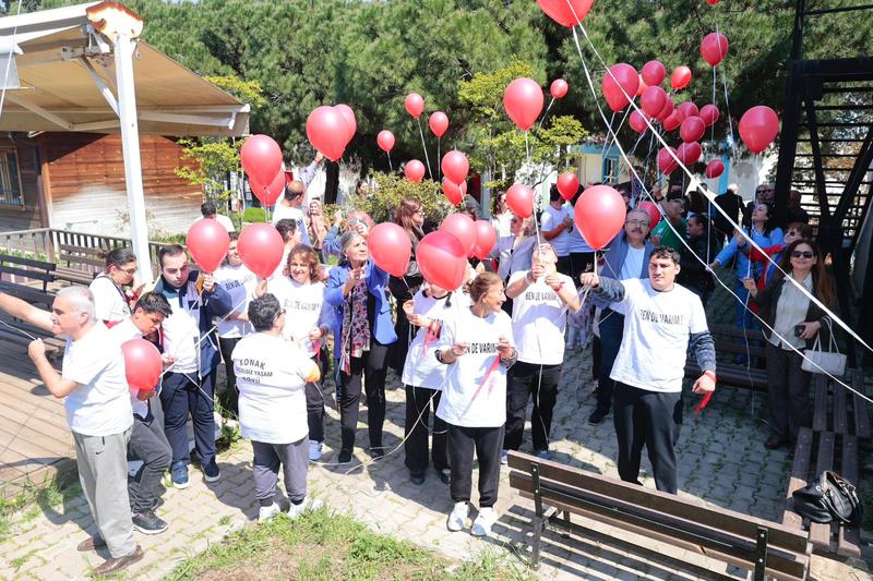 Konak Engelsiz Yaşam Köyü’nde düzenlenen Otizm Farkındalık Günü etkinliğinde ‘Biz de Varız’ diyen merkez öğrencileri, farkındalık için gökyüzüne kırmızı balonlar gönderdi.