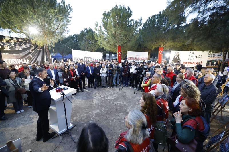 İzmir Büyükşehir Belediye Başkanı Dr. Cemil Tugay, binlerce genç için gelecek umudu olan Meslek Fabrikası’na Vakıflar Genel Müdürlüğü tarafından hukuksuz bir şekilde el konulmasının ardından başlatılan nöbetin 11’inci gününde düzenlenen basın toplantısına katıldı. Meslek Fabrikası karşısında oluşturulan Pankart Atölyesi Alanı’ndaki buluşmaya Cumhuriyet Halk Partisi (CHP) İzmir İl Başkanı Çağatay Güç, CHP Gençlik Kolları Genel Başkanı Cem Aydın, TMMOB İzmir İl Koordinasyon Kurulu (İKK) Sekreteri Aykut Akdemir, milletvekilleri, siyasi partilerin temsilcileri, gençler, CHP örgütlerinin, sivil toplum kuruluşlarının ve sendikaların temsilcileri ile İzmirliler destek verdi.