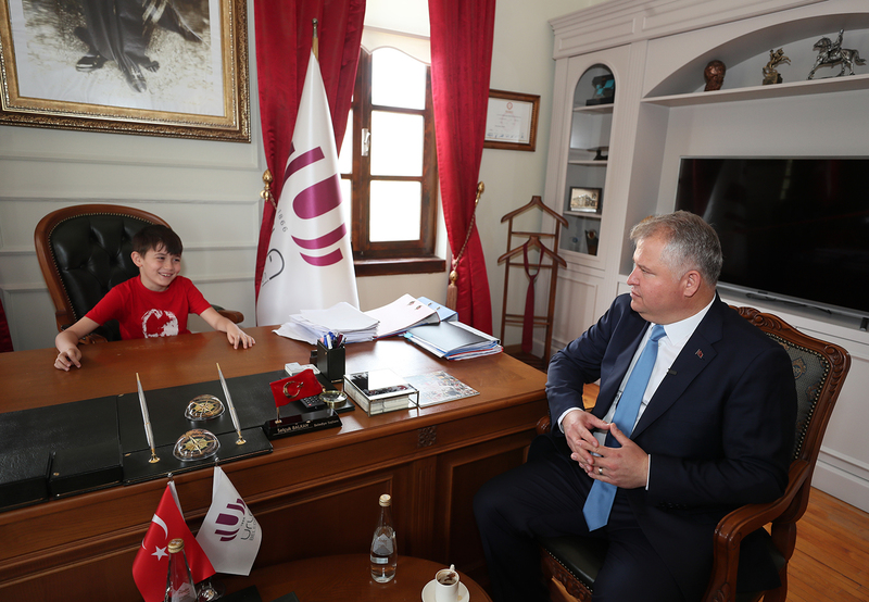 23 Nisan Ulusal Egemenlik ve Çocuk Bayramı kapsamında Seferihisar Belediye Başkanı İsmail Yetişkin, başkanlık makamını temsili olarak Necat Hepkon İlkokulu 4/B sınıfı öğrencisi Ahmet Eyme...
