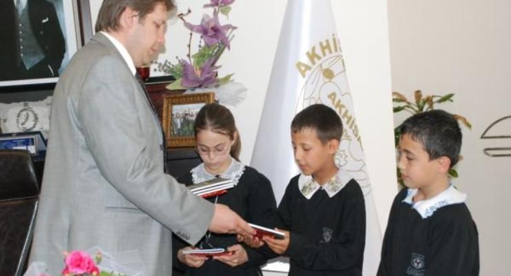 Nadide Fazıl Aysu Fatih İlköğretim Okulu Müdür Yardımcısı Hakan Özkan ve 4. Sınıf B Grubu öğretmeni Adnan Aşıklı ile öğrenciler Tuğçe Gündüzoğlu, Caner Şenay, Tolunay Namal, Esin Gürel ve Buse Yürekli daha önceden hazırladığı soruları başkan yardımcısı Ömer İşçi’ ye aktardı.